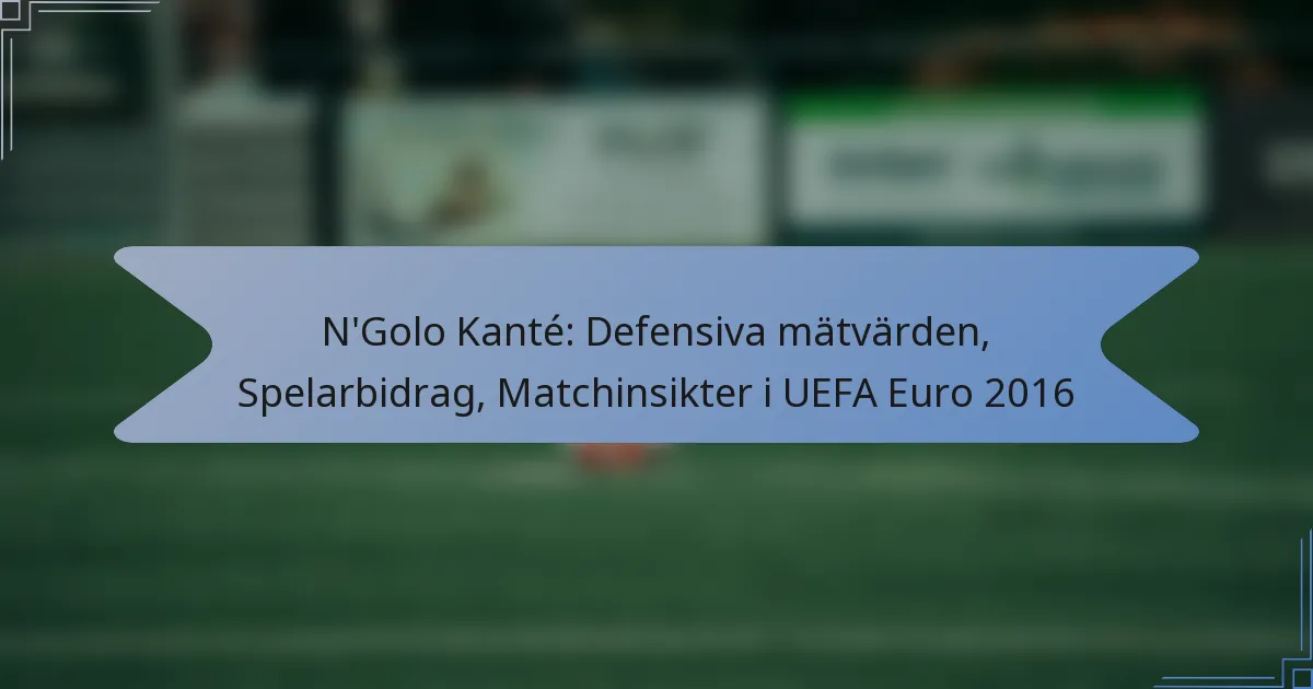N’Golo Kantés defensiva metrik under UEFA Euro 2016 placerade honom bland de bästa spelarna i turneringen. Hans förmåga att störa motståndarens anfall genom tacklingar och interceptioner var avgörande för Frankrikes prestation, vilket visade hans påverkan på planen jämfört med sina jämlikar.